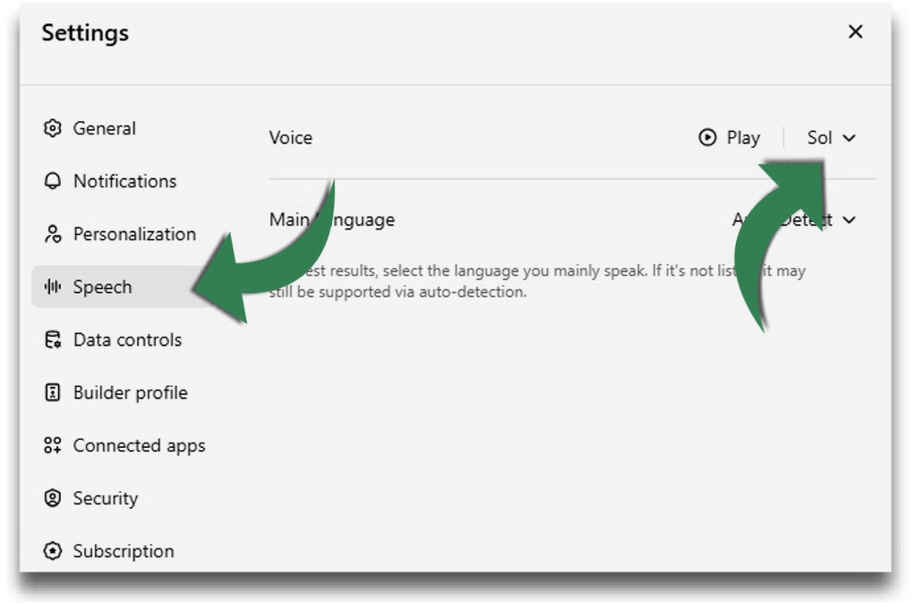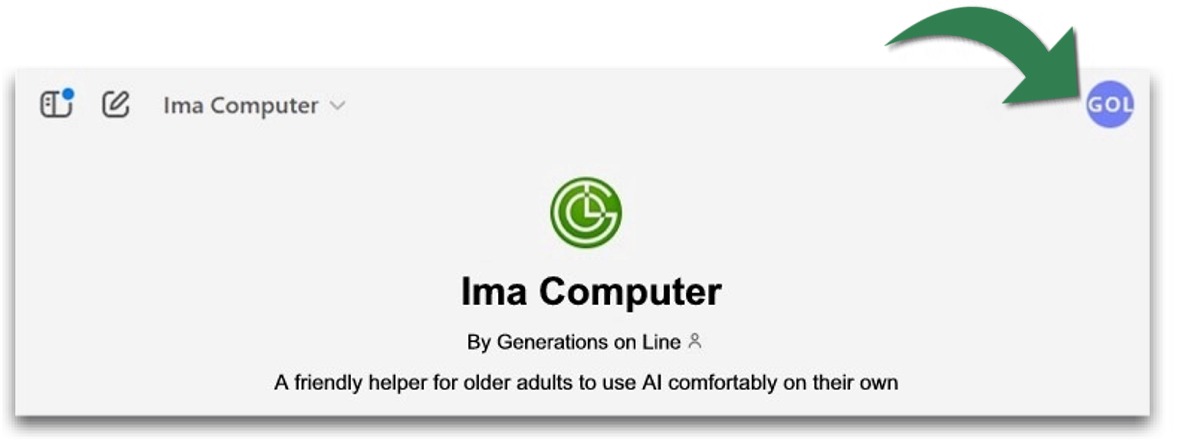 To change Ima's voice later, tap on the little circle in the upper right corner as shown below (NOTE: The circle will show your initials.)